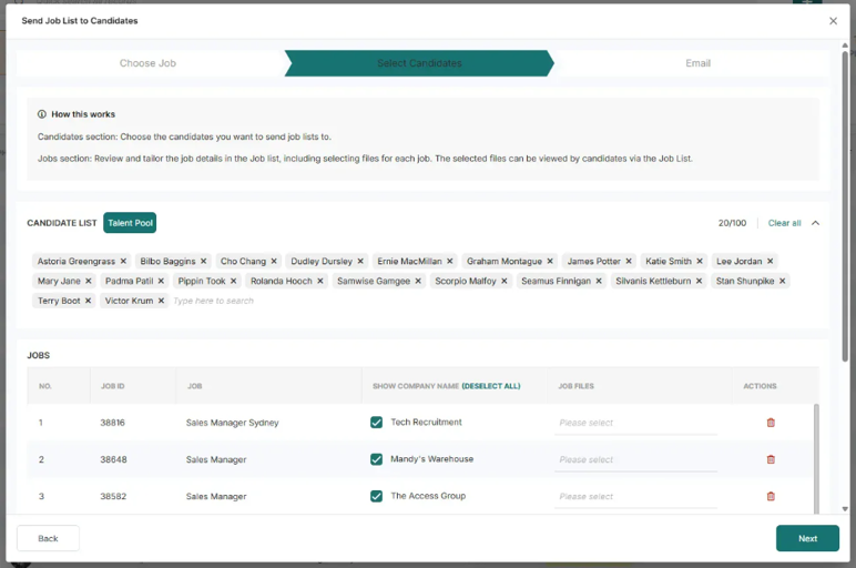 - Preview before you send: Review both candidate and job selections before hitting send, ensuring the right opportunities reach the right people.