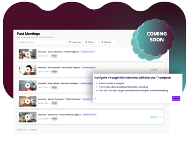 - Access Meeting Assistant Evo: Every meeting captured and logged into your records without manual input