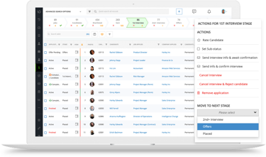 Im Gegensatz zu CRMs liegt der Schwerpunkt beim ATS für Personalvermittlungsunternehmen stärker auf dem Bewerbermanagement. Es bietet Recruitern ein zuverlässiges Werkzeug, um nach Profilen zu suchen, mit Kandidaten zu kommunizieren, Bewerberdokumente (Lebensläufe, Anschreiben usw.) zu verwalten, Vorstellungsgespräche zu planen, Angebote zu versenden und vieles mehr!