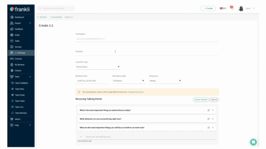 Frankli provides managers with meeting templates, talking points, sample questions, and an easy place to capture notes during a 1-on-1.