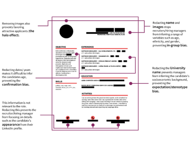 MeVitae's blind/anonmymised recruiting tool redacts over 20+ parameters, from gender to university name, with 95%+ accuracy.