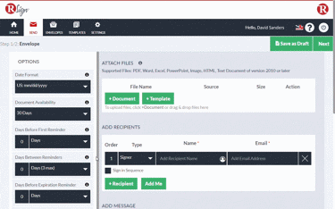 Easily drag and drop control fields in RSign to prepare documents from Access Vincere Evo records, local devices, or integrated drives and automatically prefill input fields with existing information from Access Vincere Evo records.