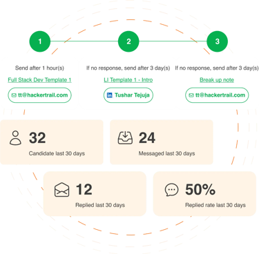 Scout’s built-in CRM empowers recruiters to engage candidates over email and InMail in sequence. Setup personalised message templates, run personalised campaigns for each job, and monitor candidate responses via your dashboard. Reduce manual overhead and increase productivity.