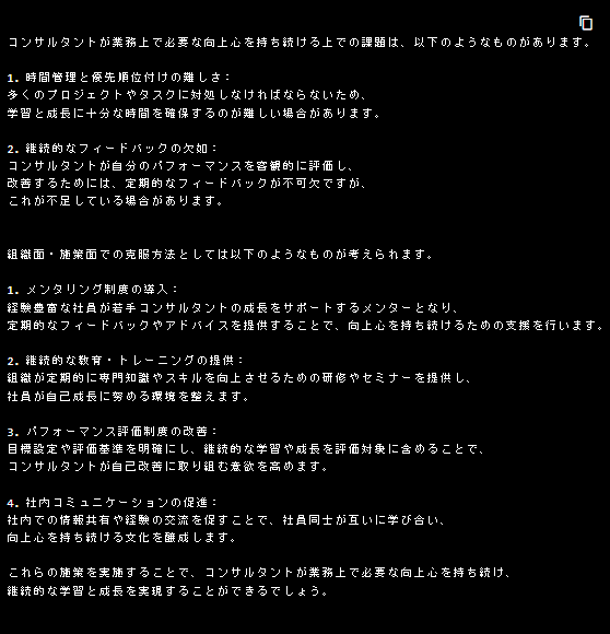 上記の回答を踏まえ、以下のプロンプトを投げます。