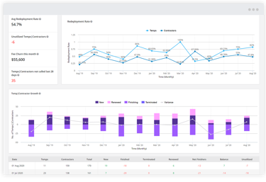 派遣事業に特化したリアルタイムレポート。