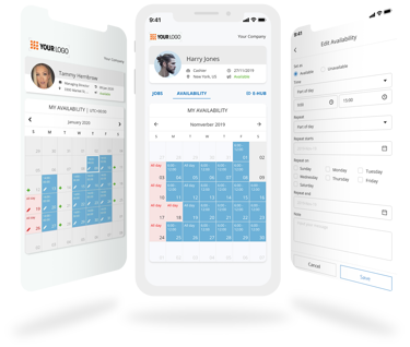勤務可能かどうかの確認と依頼を複数で一括送信。